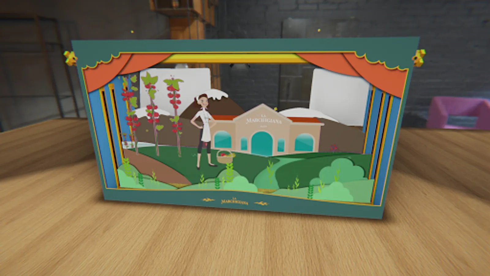 Scan with the camera of your device on a horizontal surface, and place the 3D scene to enjoy the augmented reality experience "La Marchigiana"