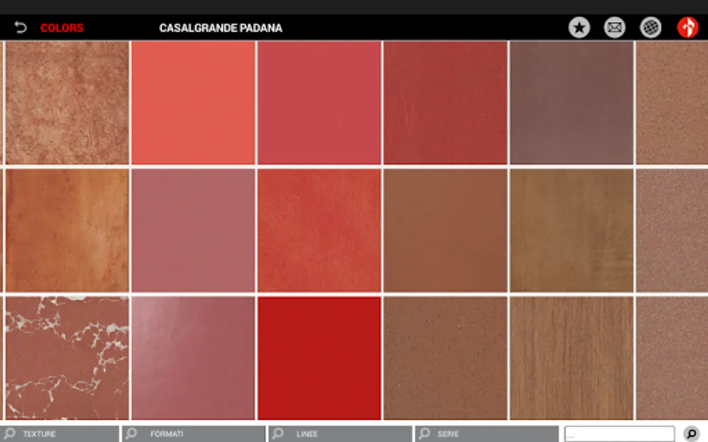 Colors is the app from Casalgrande Padana that allows you to carry over 412 porcelain stoneware tiles – divided into five product lines – in your pocket.