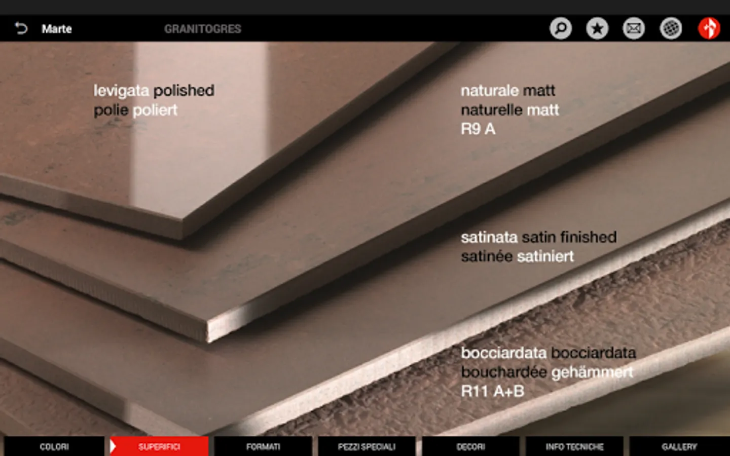 OVER 240 TYPES OF TILE in porcelain stoneware contained in one app that’s constantly updated to keep you informed of the vast array of products Casalgrande Padana offers