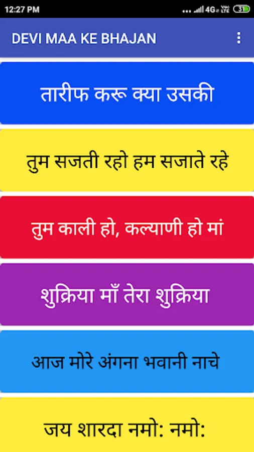 This app is designed for Mata Ji Ke Bhajan With Lyrics. You will find a lot of latest Bhajan (Devi Maa Ke Geet, Durga Maa Ke Geet, Matarani Ke Bhajan, Navratri Geet, All Devotional Songs Of Devi, Bhakti Geet)