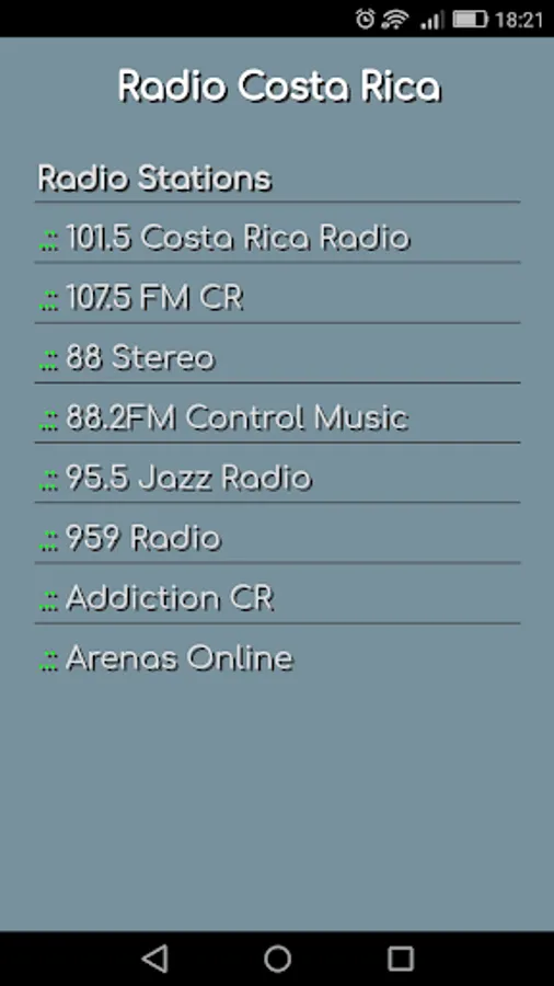 Find the best of popular Costa Rica radio stations in our simple to use radio app. Our radio application will entertain you 24 hours a day, listen to music, news and sports. Keep in mind when you choose to stream a radio station, you have to wait for the link to load a few seconds before the radio starts playing, sometimes the radio station may be offline. Our radio application is very easy to use.