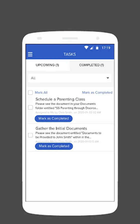 The Gendelman Law Group is for clients of the law firm Gendelman Law Group. The App is intended to assist clients in communicating with their attorney and staying informed regarding their case. Clients may utilize a message feature to send and receive messages with their attorney, as well as upload and view documents, receive assigned tasks from their attorney, view their case calendar, and stay up to date on their bill. The Gendelman Law Group is intended to supplement traditional means of communication and insure the clients of Gendelman Law Group are thoroughly informed.