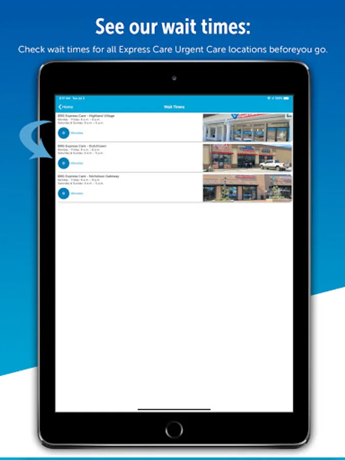 • Urgent care clinic wait times