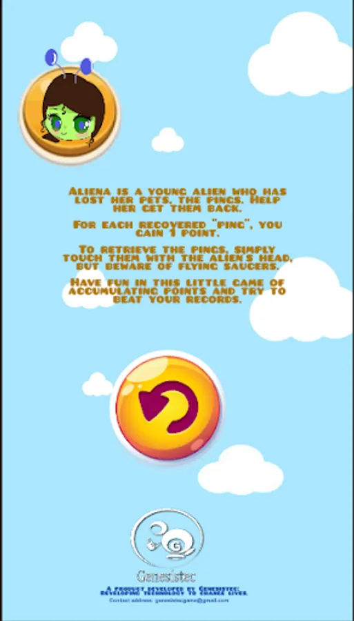 Aliena is a young alien who has lost her pets, the "Pings". Help Aliena recover her pets, but be careful with flying saucers.