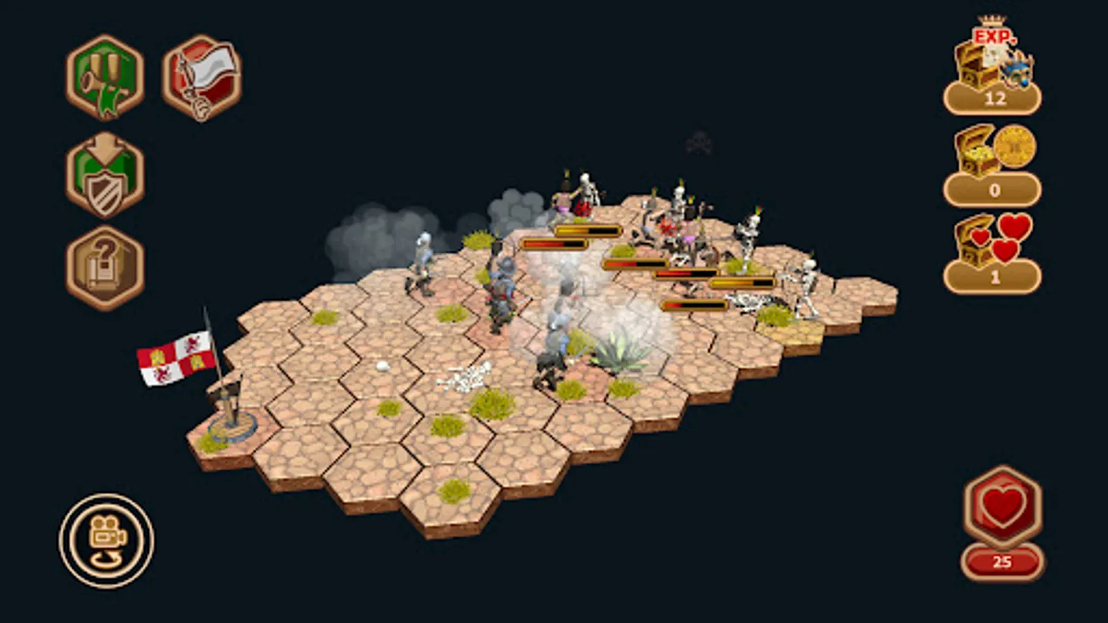 ▪ Battles in the game take place in a separate location and consist of one or more rounds. Each warrior has its own characteristics depending on the class. At the beginning of each round, you have to arrange your units in such a way as to inflict as much damage on the enemy as possible. Battles take place in real time, you just have to watch what is happening and heal your units using the accumulated hearts. Having won the battle, you get rich trophies.