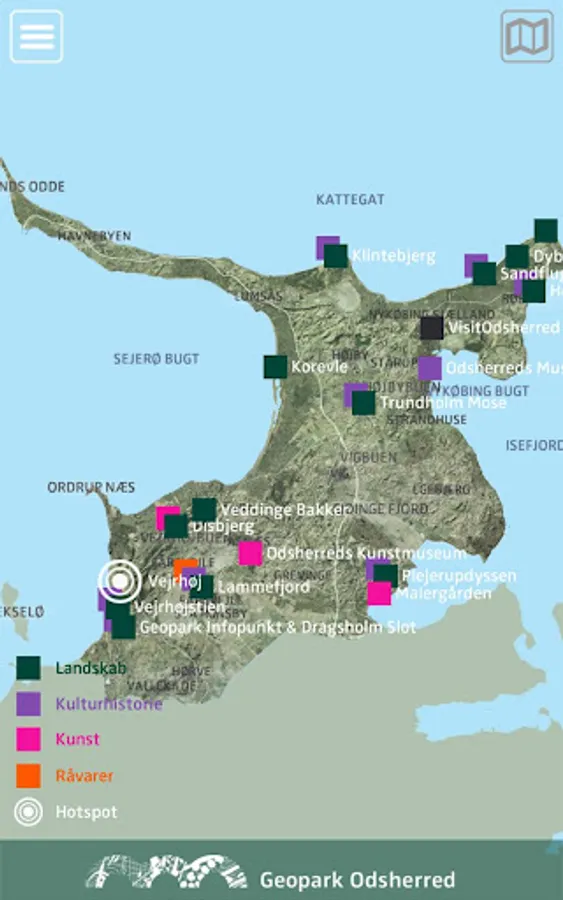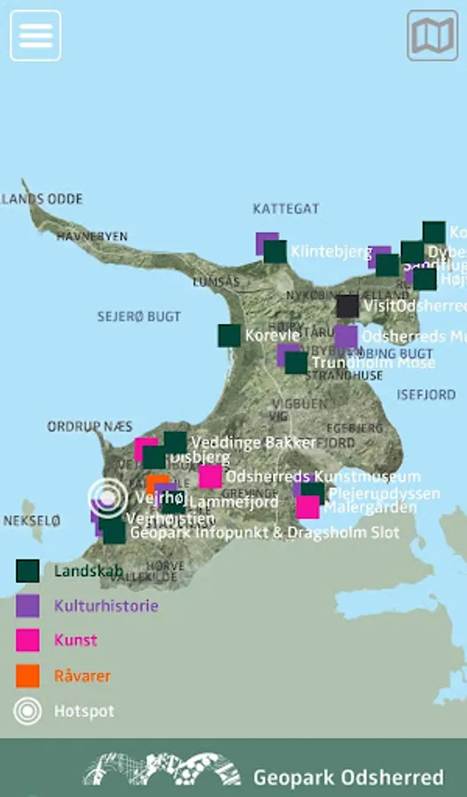 The app also features a map with the addresses and GPS coordinates you need to find your way in the landscape on your hunt for exciting locations of geological interest, which are often places of the greatest scenic beauty. The map shows car parks with Geopark information signs, great places to set off on a walk or bike ride in Geopark Odsherred. The more you know about the landscapes, the richer your experience of the countryside will be.