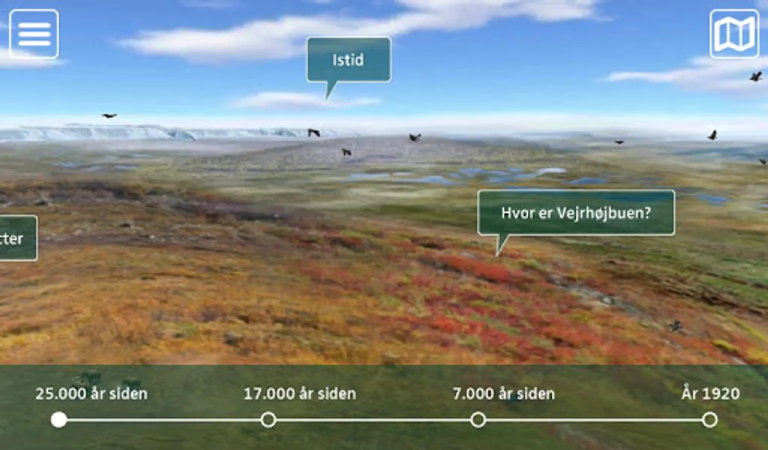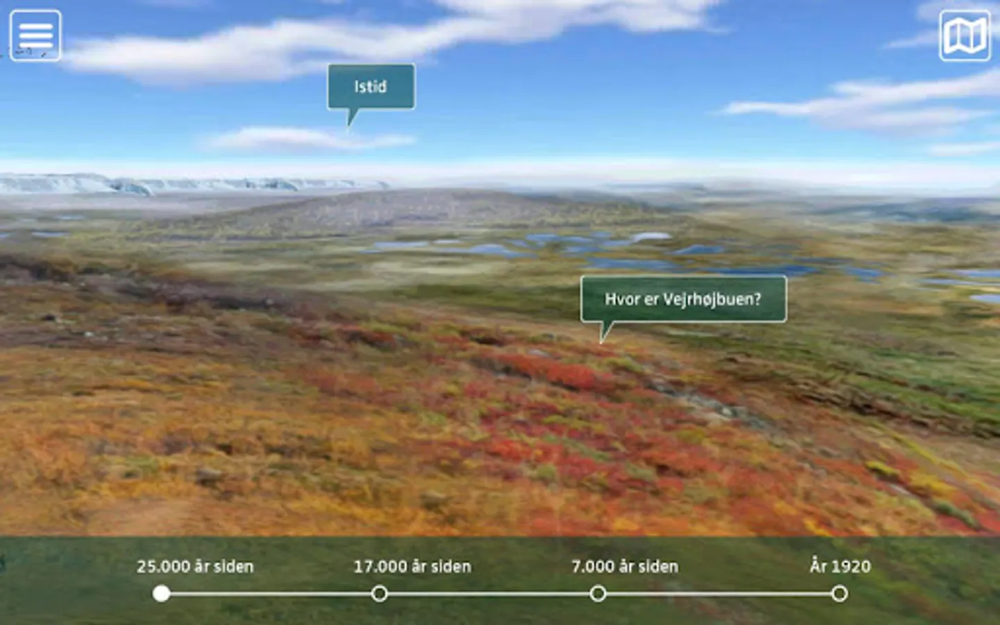 Join us on a journey through time in Geopark Odsherred The view from the highest point in Geopark Odsherred has been reconstructed as four "hits" over a period of 25,000 years with the help of magnificent 3D graphics and augmented reality. Technology supplements reality by combining the physical setting with a 3D universe.