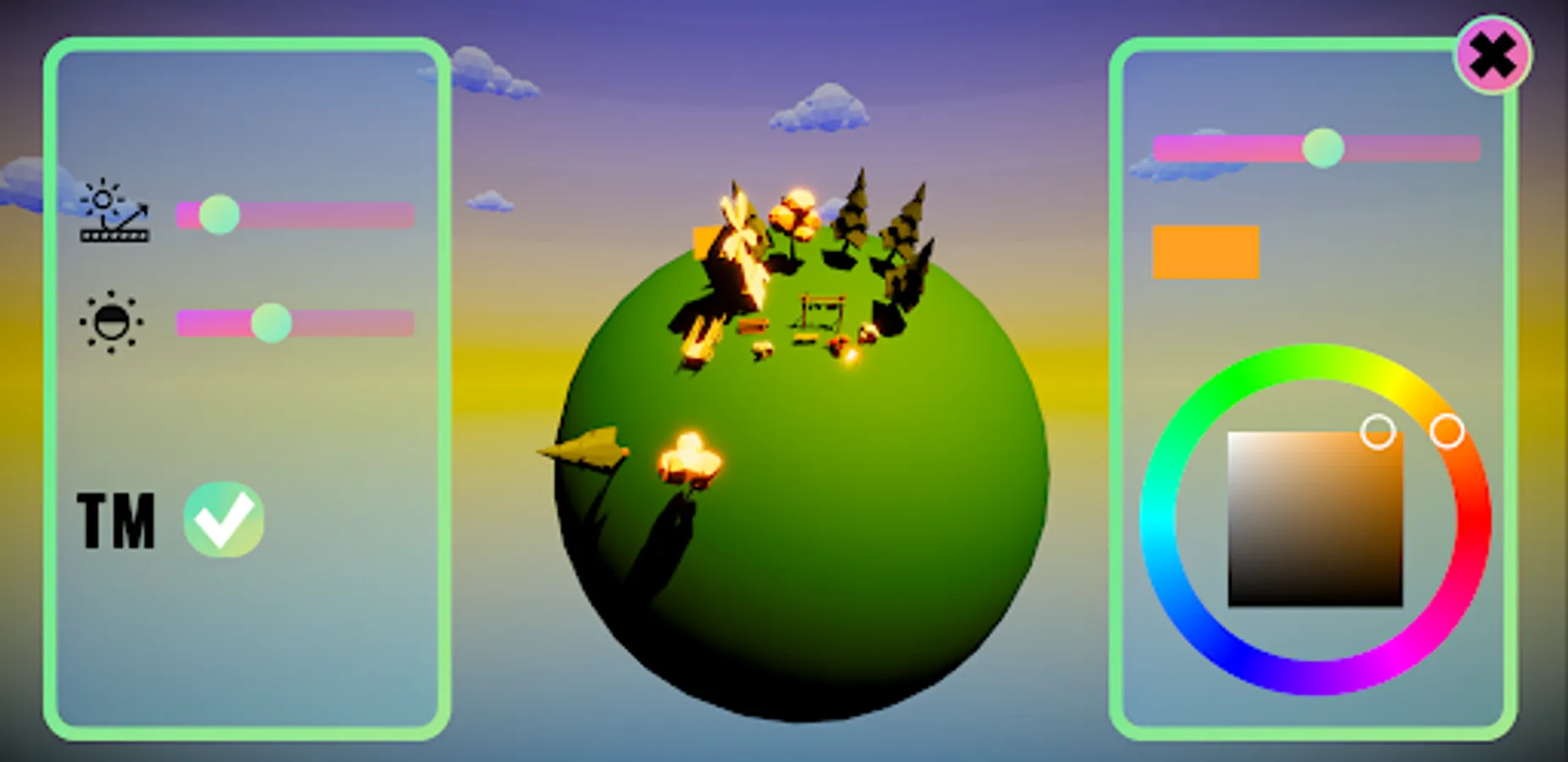 My Little Planet has multiple objects to decorate your planet: