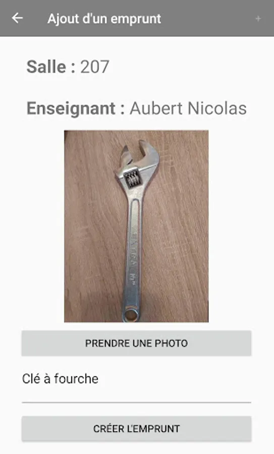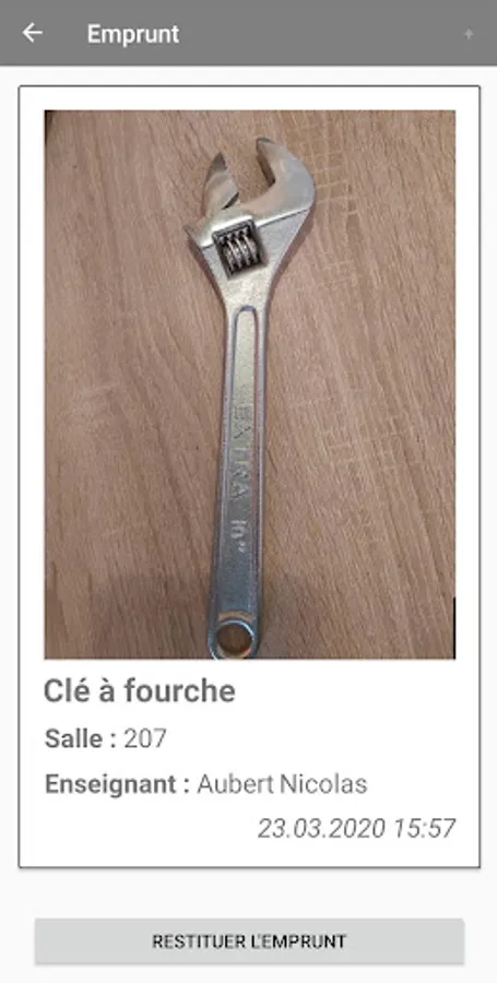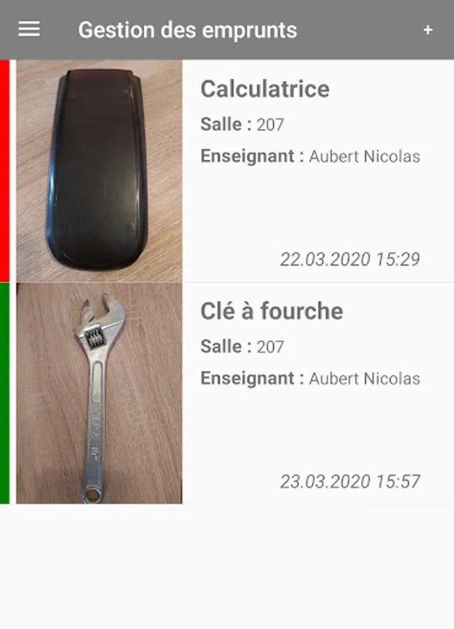 Scan the QR Code in front of the teacher's room, take a picture of the object: the loan will be added and the teacher will be automatically notified.