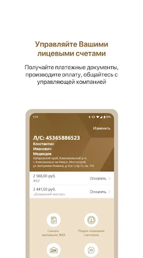 The Technology Sum application is designed to manage your personal accounts in the housing and utilities management company, order additional services, receive payment documents, and pay to the management company accounts.