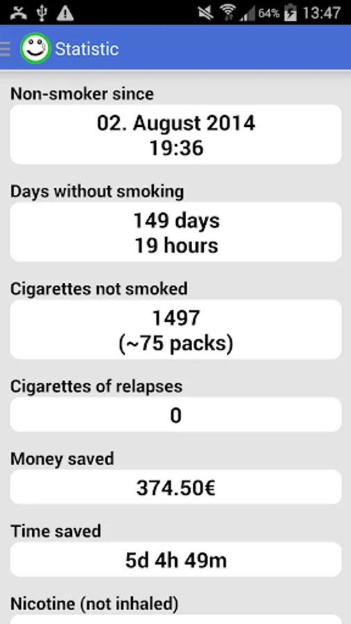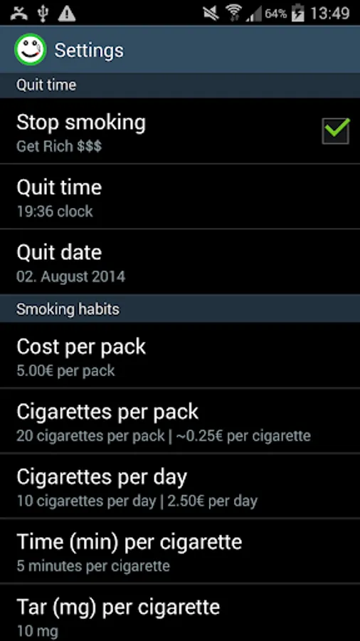 Why do you spend so much money on damaging your health? Why don't you spend this money more reasonably? This app helps you to stop smoking by showing what you can now afford with the money saved.