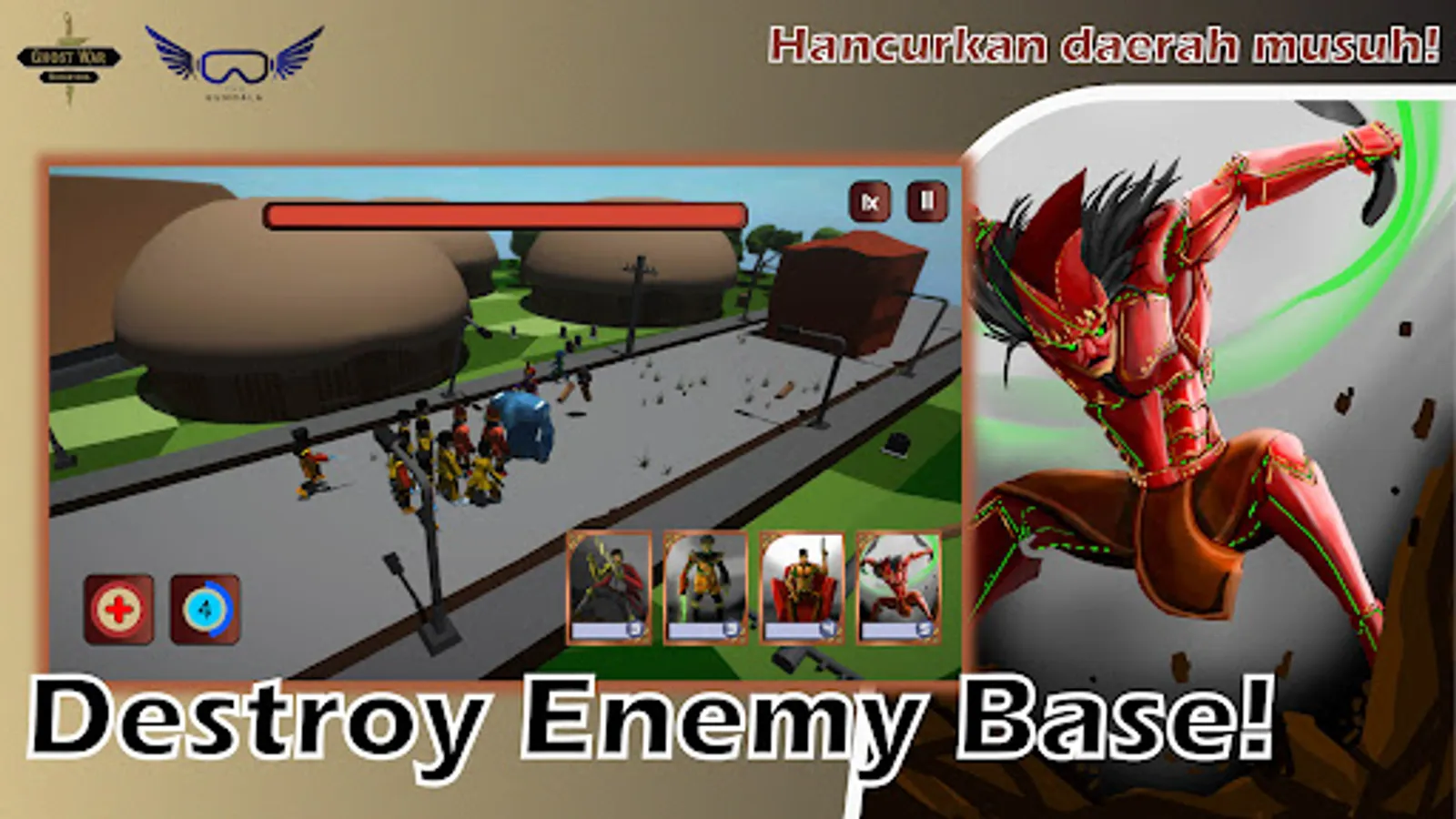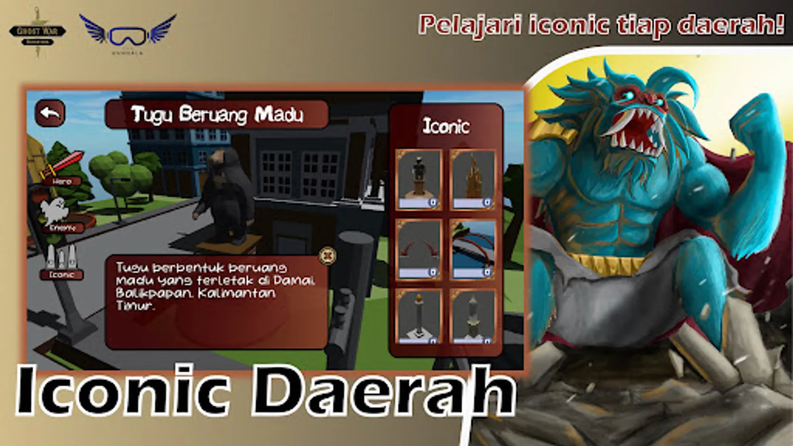 Ghost War Nusantara is a 3D Tower Defense game with the theme of Education about Heroes, Mythology, Regions in Indonesia and many more. Here we can play while learning about many things about Indonesia. Exciting right? So, what are you waiting for? Come on download now!!