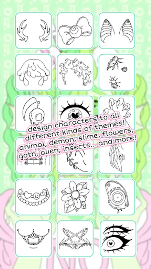 Monster Girl Maker is a character creator where you can design a variety of portraits using over 1000 different parts; skin, eyes, mouth, eyebrows, hair, accessories & clothes. This app allows you to create monsters with slime, stitches, horns, multiple eyes, wings and much more!