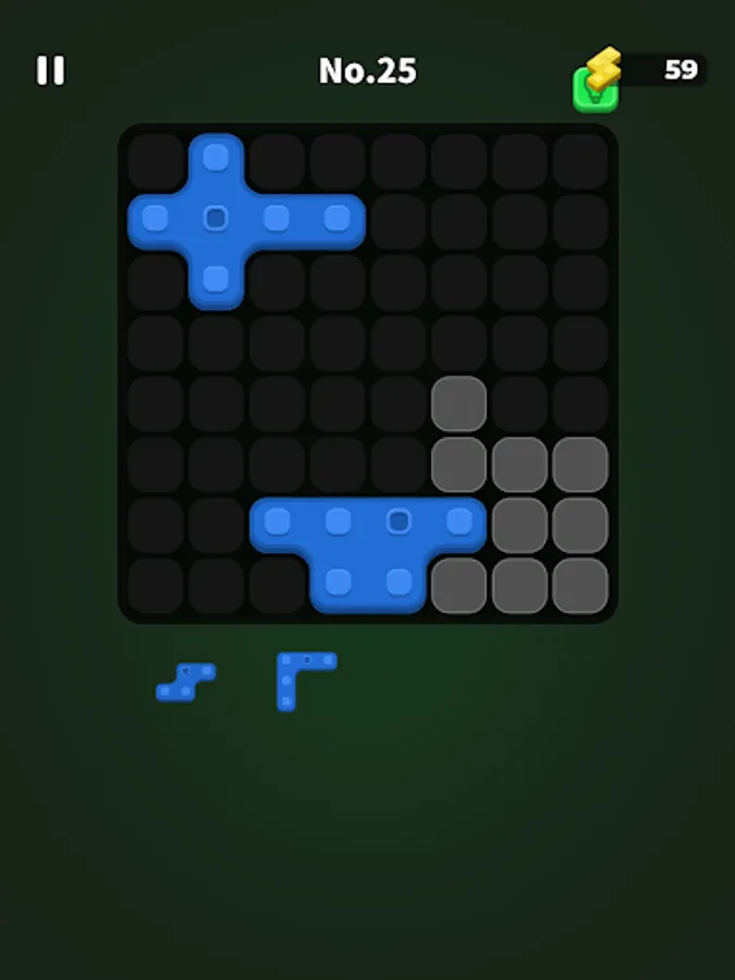 Click on the blocks of different colors, try to rotate them to the appropriate direction, and fill in the gray area in the map. Depending on the combination of different blocks, you can neither exceed the gray limit in the map, but also need to fill all the gray areas.
