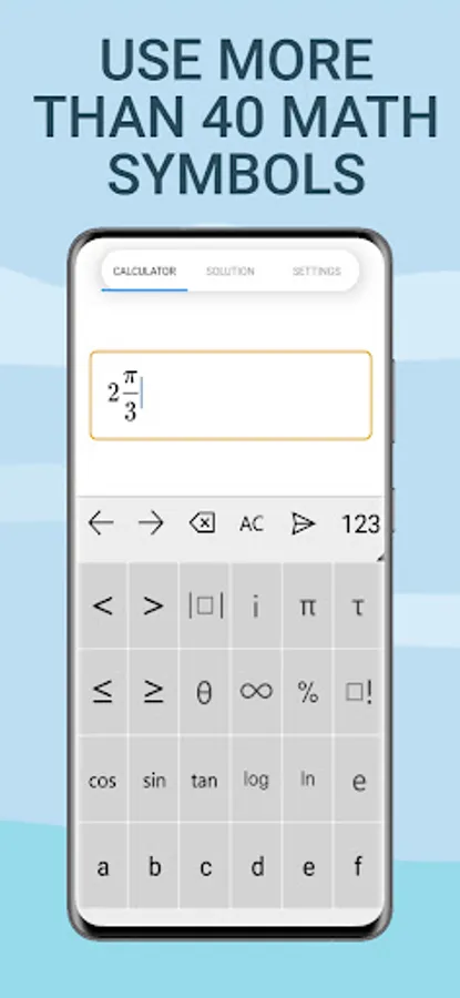 • Wide coverage of math topics: arithmetic, algebra, fractions, powers, roots, logarithms, functions, matrices, graphs, limits, continuity, differentiation, integration, permutations, combinations, probability, statistics, trigonometry, geometry, vectors, complex numbers and more.