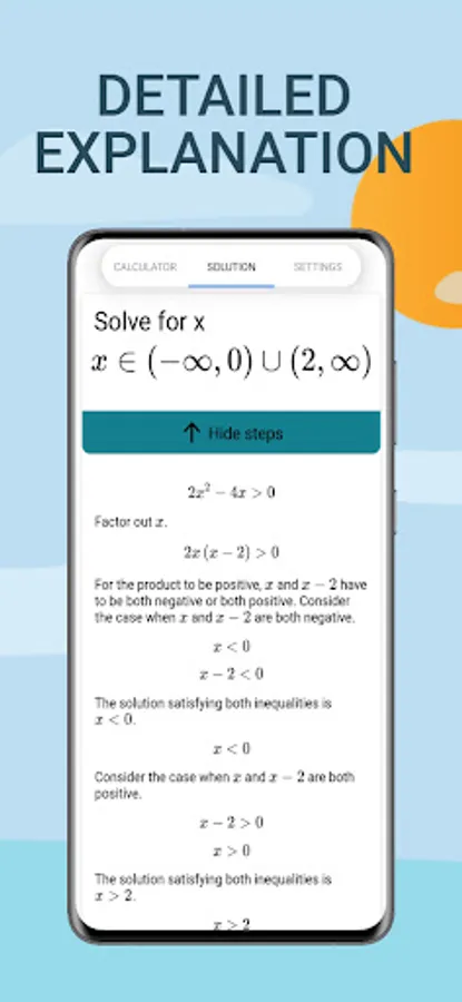• Step-by-step solution: MathApp generates a step-by-step solution with detailed explanations for hard math problems.