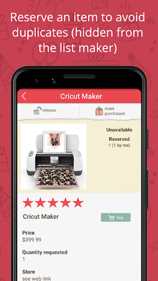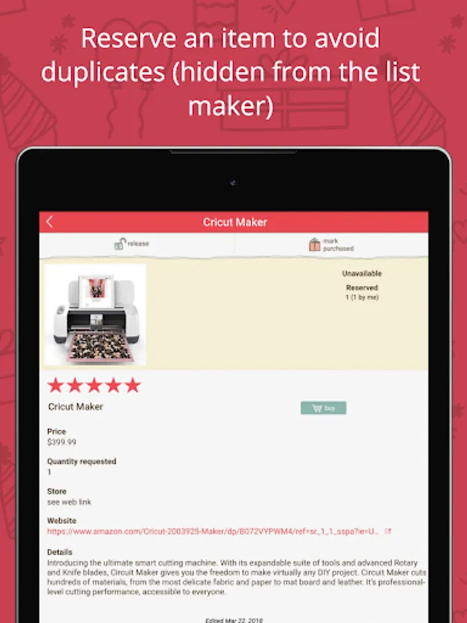 * Mark gift ideas reserved or purchased so others don’t buy a duplicate gift
