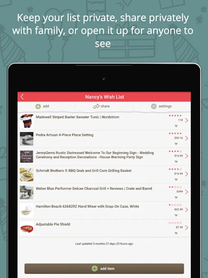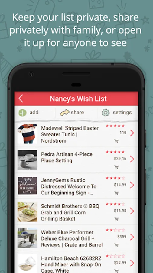 Unlike other wish list apps here on Google Play, Giftster makes your whole family's gift giving experiences more fun and less stressful.