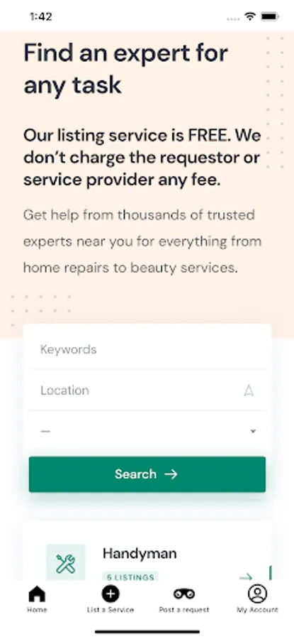 Our listing service is FREE. We don’t charge the requestor or service provider any fee.