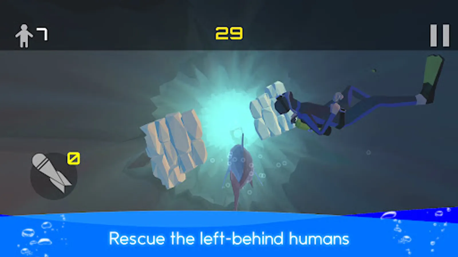 By tapping and holding the screen in the direction you want to move, "Mecha Shark" will move.