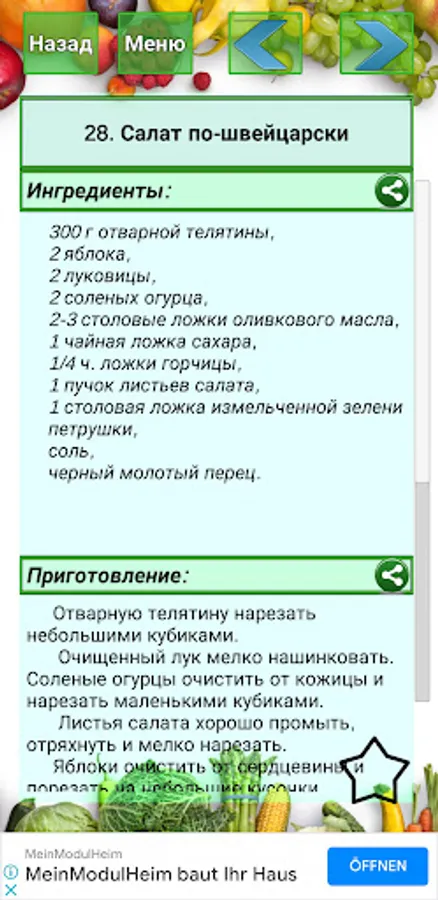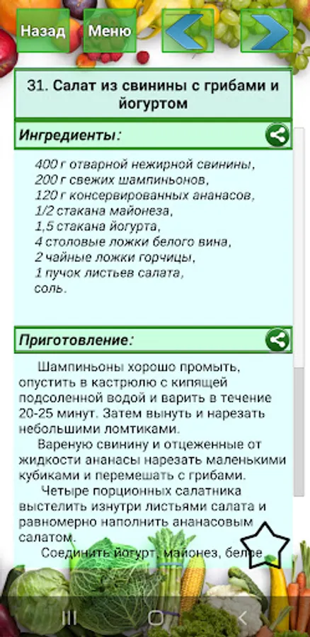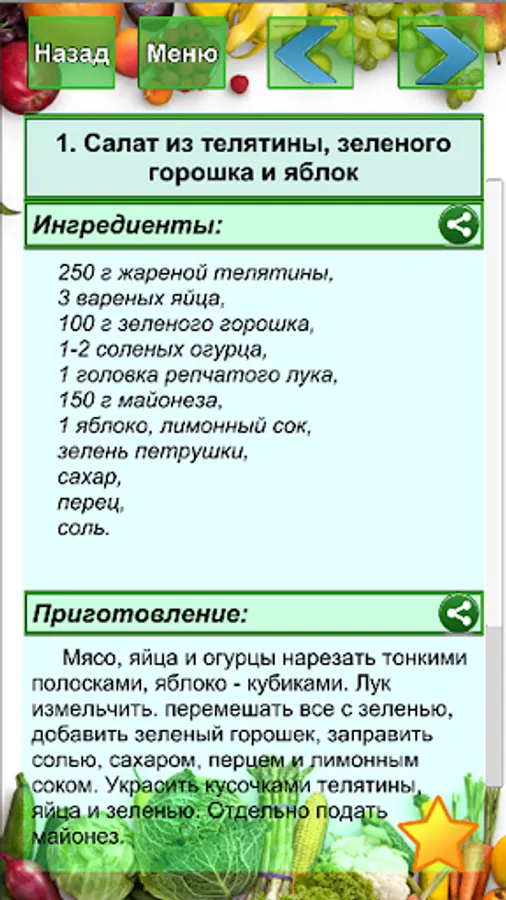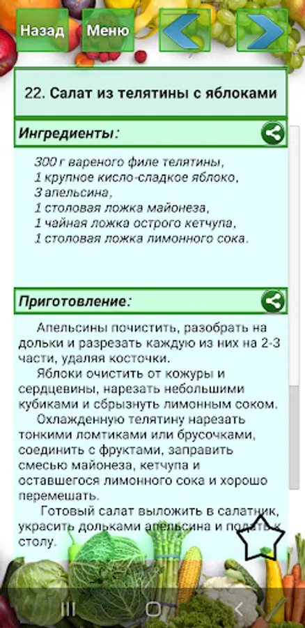 This application will help to please your family prepare for any occasion including a new year. With it, you will not be distracted and run to the computer or to search for books. You have all the best salads are always at hand.