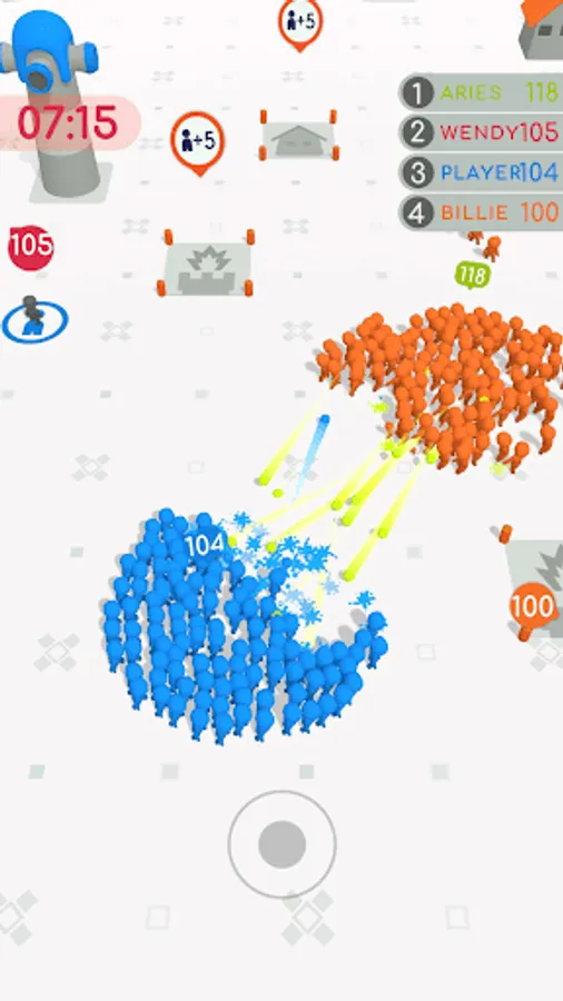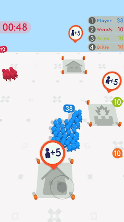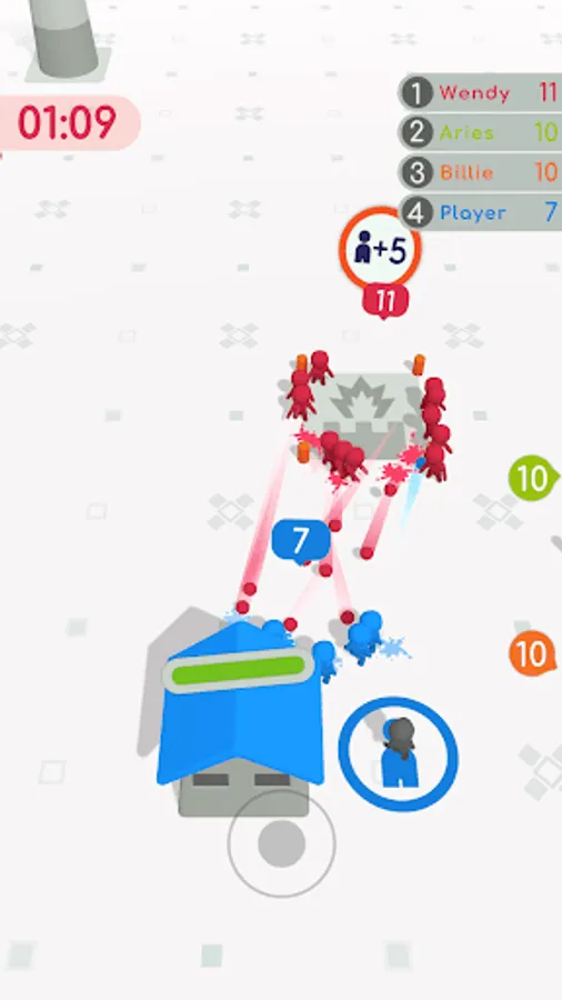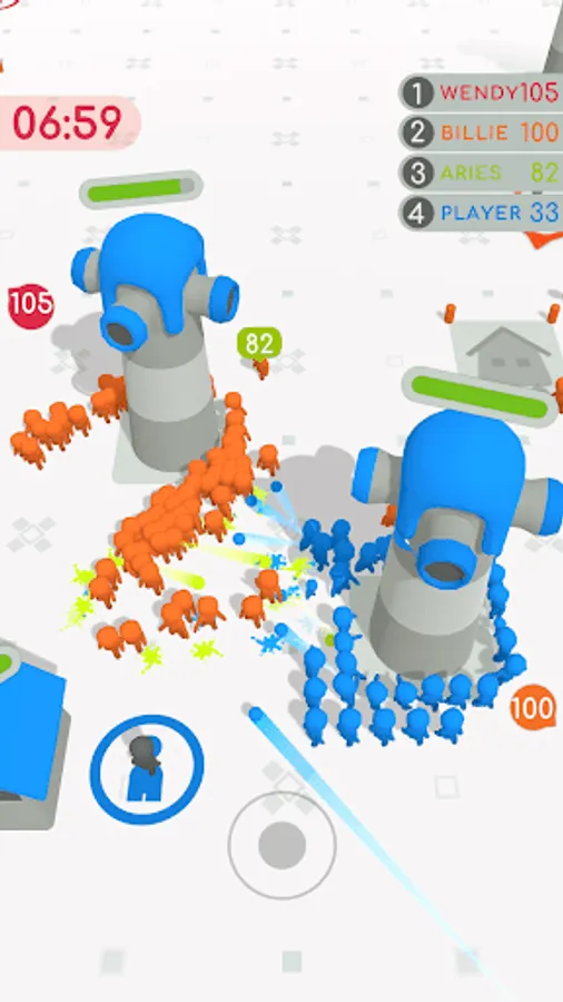 Build and Grow is a great action game. In this game, you will build houses and grow your group. Capturing towers will assist you to defeat your opponents. Destroy their buildings! Crush enemies, and win the game by being the the biggest crowd. Download now!!