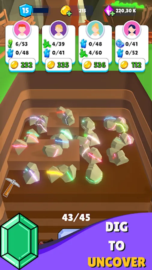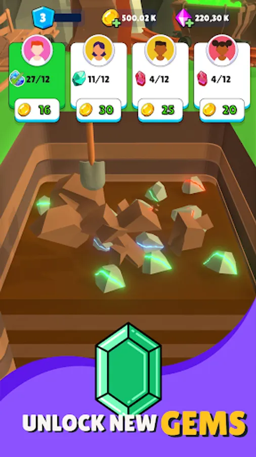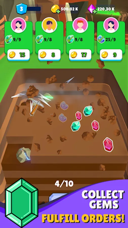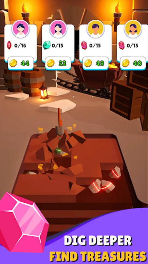 Uncover valuable gems, fulfill orders, and level up in this engaging idle clicker game. Dig and swipe your way to success!