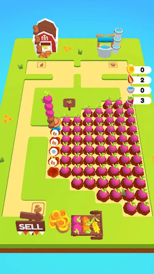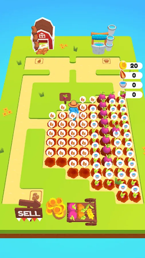 Welcome to Farm Dash. Here is your new farm. Plant some seeds. Give them a water. Harvest it and sell in the market. You can buy some new farm areas. But think before you dash. You should find the way! Have fun.