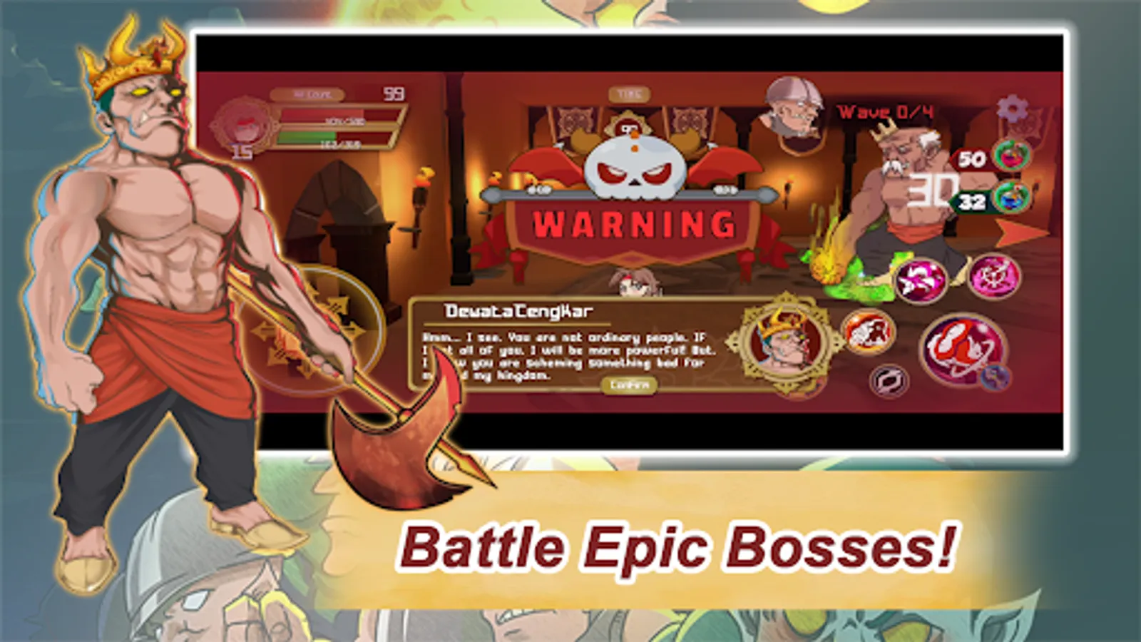 Prepare your 2.5 D beat em’ up side scroller action battle for a challenging adventure in medieval Indonesia aesthetic Nusantara folklore, where players can learn ancient martial art skills in a progression chapter story to experience the true adrenaline rush from mythical heroes!