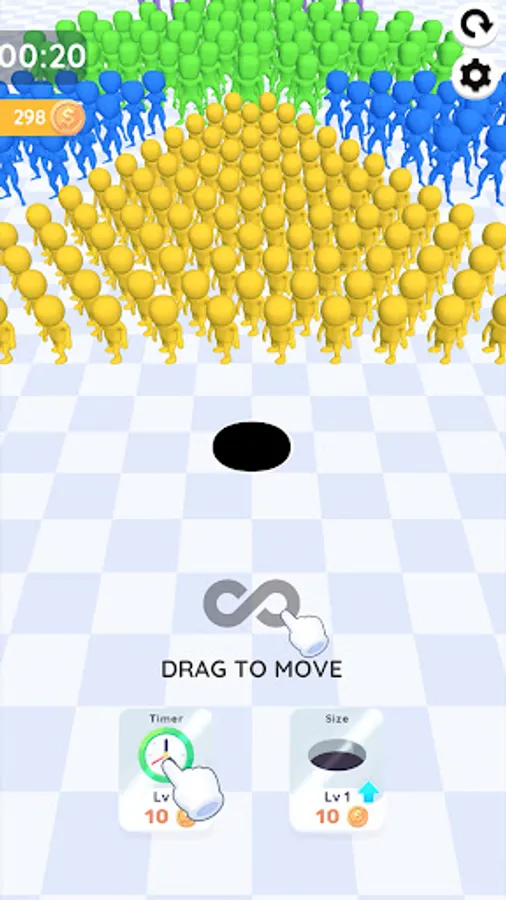 In the first scene, you'll collect characters by using the hole. The hole is a powerful tool that can suck up anything in its path, including characters. You'll need to strategically position the hole to collect the characters you need to build a strong team.