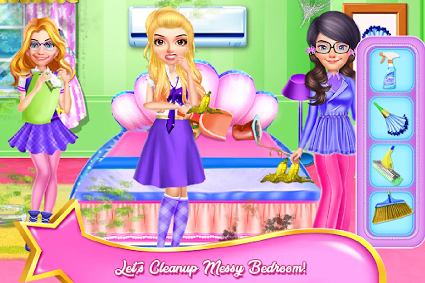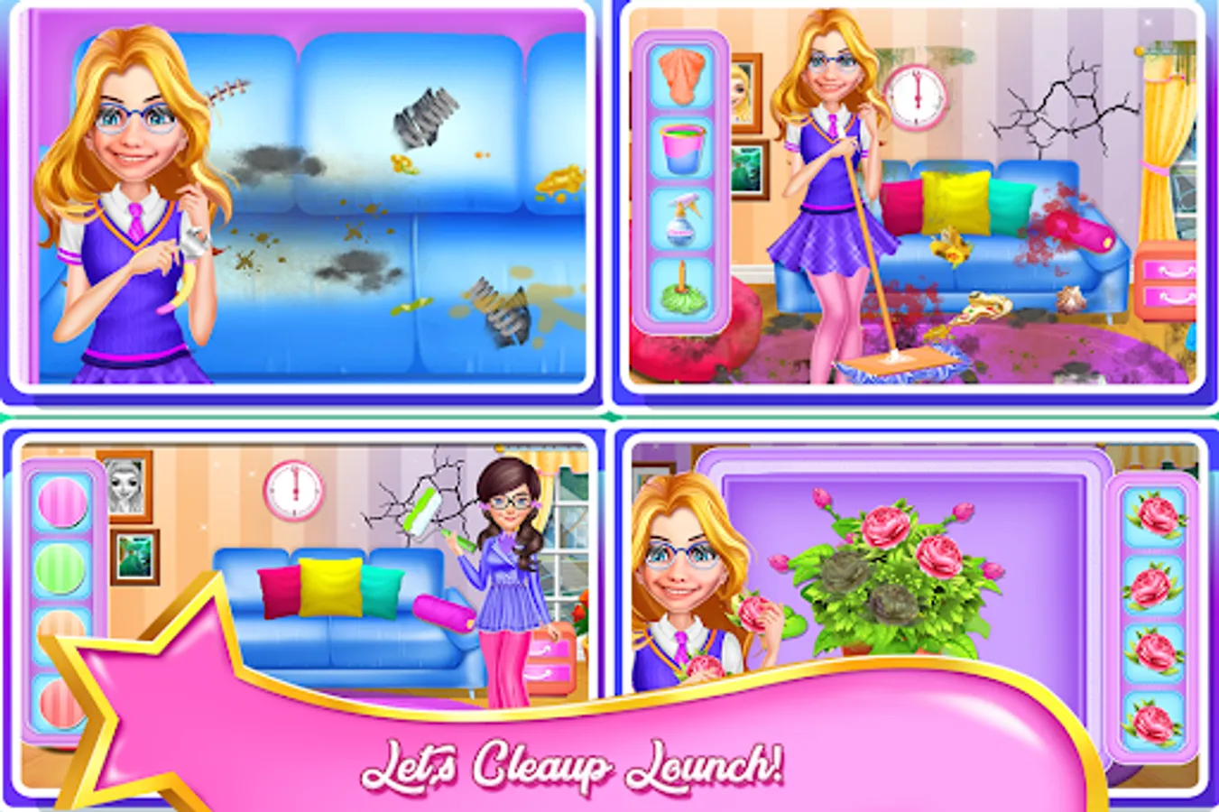 Every day we can have fun while we clean the house, and through this house clean-up game for children, you will be able to own a very large house that is also very dirty and messy. All rooms need to be cleaned very well and then you have to use your creativity to decorate in a modern way. This school girl messy house game is exactly what you need to test certain skills, you can learn tricks about cleaning and at the same time have a lot of fun.