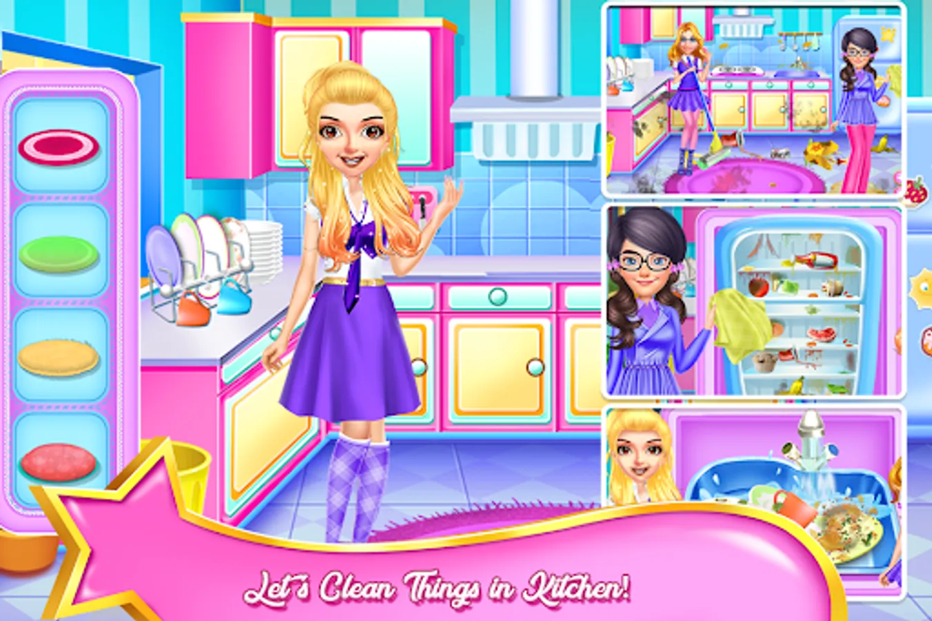 You will meet three very nice girls, they are very happy because today you will help them with all their problems. First, you have to help them to buy everything they need, you will learn to choose the right products and then count the money to pay. When you get home you need to clean the kitchen, everything is very dirty. Wash the refrigerator, throw away all the expired food, wash the dishes, then clean the floor and arrange the furniture.