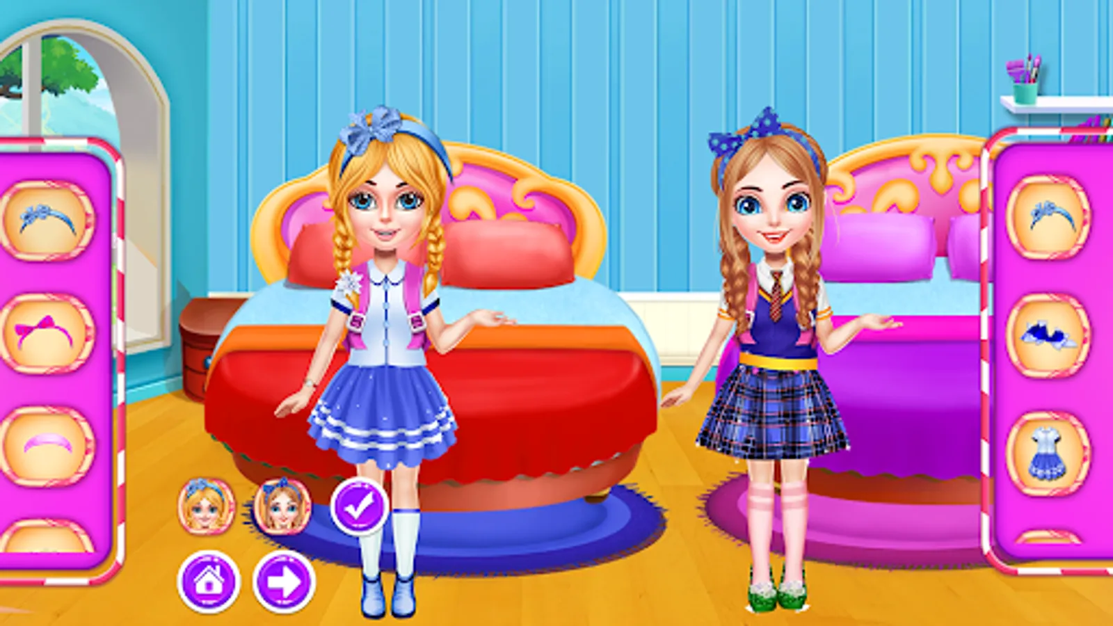 School is very important for us, all people have to go to school, to learn interesting things and today you will meet two very nice girls who will go to school, they had vacation and now they are taking their first courses. Through this twin sister back-to-school game for kids, you will be able to have a lot of fun and at the same time, you will be able to help them do all the educative activities that we have prepared for them.