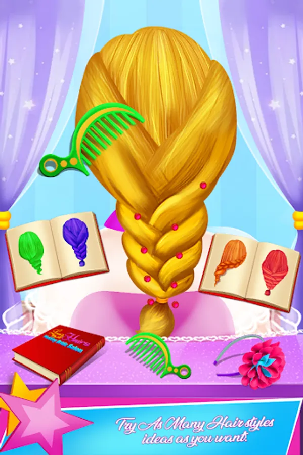 You have to make wedding hairstyle of long hairs of the bride just like hair salon styles, customize eye brows, wear jewelry and do face makeup, lip stick, coloring above eyes, dress up long hairs of bride to look the bridal beautiful and good looking for the lovely wedding groom. Now you have to decorate the wedding girl’s hands by wearing golden rings with capture and nail polish. Then decorate bridal legs with anklet jewelry and nail polish. Now it’s time to dress up longs hairs bride. Select nice suitable wedding dress and wear it on the bridal body. Next you have to dress up groom with attractive and beautiful dressing. Make up groom, dress up and wear Sherwani to groom like south Asian and Indian traditional wedding styles. Also put glasses on the groom eyes. Now wedding has been started. Shake lovely couple hands with one another and perform Saptapadi (Mangle Fera) tradition. Then perform vermilion mark on the forehead of the wedding bride girl to do promise for long life. Then you have to shoot photos of lovely couple in royal Indian style. Now Suhag Raat started. Drink milk to groom. Wear ring to bride and then turn the light off. Now night love in bride and groom will start for some time. Decorate stage. Wear bride and groom party dressing and enjoy the party. Party photo shoot will be done at the end in this wedding braids game. Some unique features are given below.