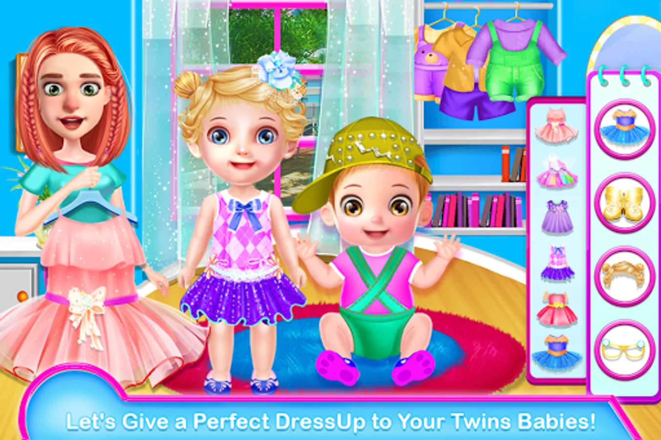 Welcome into 👶 Mommy Maternity & Newborn Twins Babies Nursery Nanny baby room 🚼 game for girls and kids. Mommy & Daddy are more excited after the news that they are going to be the parents of twins newborn babies. Parents need to prepare a baby nursery for newborn babies arrival. Twins newborn babies precautions are very important to give equal attention to both of them. Be the perfect babysitter in new born baby daycare game baby nurse school nanny. Whole family including mommy, daddy, grand mother , grand father , brothers , sisters and even uncle are waiting for newborn twins babies first day at home.