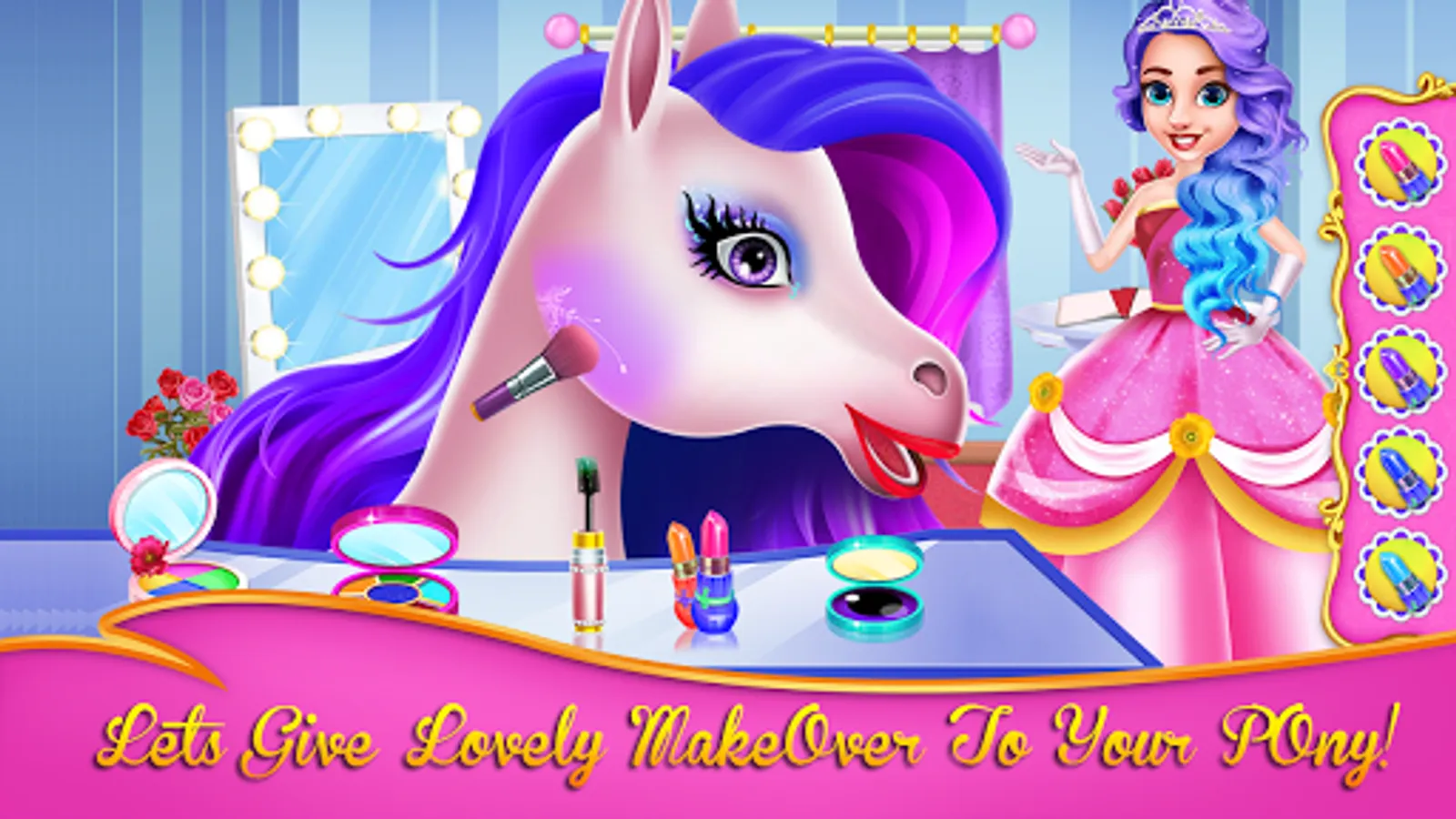 Princess Pony Horse Caring - Magical Beauty Salon is all about love, care and trust of little princess girl with her magical fairy pony horse. Little princess trust the tooth fairy horse in free horses games for kids. Let's do little dressUp, pony makeup, pony makeover, fairy hairstyling and braiding and amazing tooth fairy spa. Horses is a beloved creature and girls like to play with cute unicorn pony horses. Enjoy games for girls and boys in this royal palace rainbow virtual pets & tooth fairy horse game. Let's make a pony land in princess castle royal palace for sweet princess pets. Royal princess loved to introduced her cute pony as my royal horse among royal friends and family. Castle royal princess will love to give perfect hairstyling to my royal horse like perfect ponytails and poney hairs makeover as a pony fashion makeup artist.