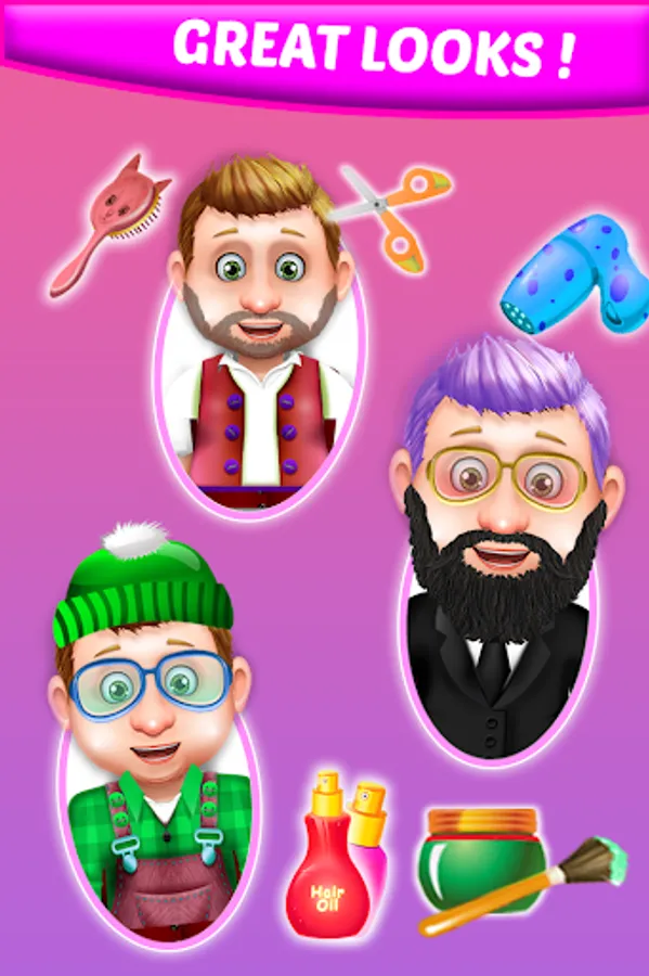 Every boys like to look handsome guy and wants hair styling that attracts you everyone in birthday party, wedding anniversary, new year or any other occasions. In this FREE charming beard shaving salon game for boys, It will help you to bring your beard to next level by using trimmer, shaver, scissor, comb and edger. Pick a beard style for idea face shape.