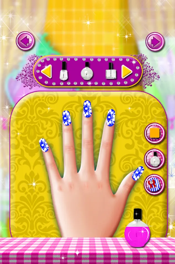 There are different types and colours of nail paints. You can choose any colour you want or you can make a combination of two colours too. Let your imagination create a dreamy look for your nails which you have always wanted. For decorating nails, we have different things like glitters in different colours, rhinestones, design patterns, nail art stickers, sprinkle beads, decals. You can choose any theme too and decorate your nails according to them like rainbow theme, party makeover theme, farewell dress up nail art, wedding nail paints, unicorn etc. With your skills, you can do nail art for twins sisters and triplet girls as well. After completing nails, decorate your hands with beautiful accessories like rings for fingers and henna. Now select a background for the picture. Take a photograph to show to your friends, family and show your amazing skills and talent as a nail artist in this offline games.
