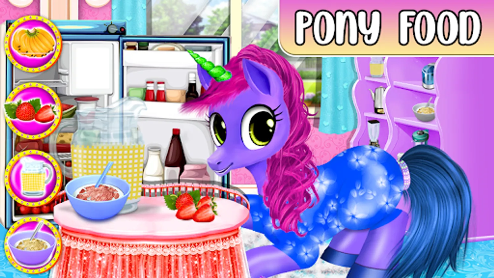 Unicorn Pony absolutely will be the best gift for your birthday! Now its your duty to be the best Nanny and groom your unicorn pony in the best manners. In kids game let’s get ready for unicorn pony spa, feed, cleaning, dress up, makeup and singing. Girls games are always gives you opportunity to show your marvelous skills in dress up and makeover girls games.