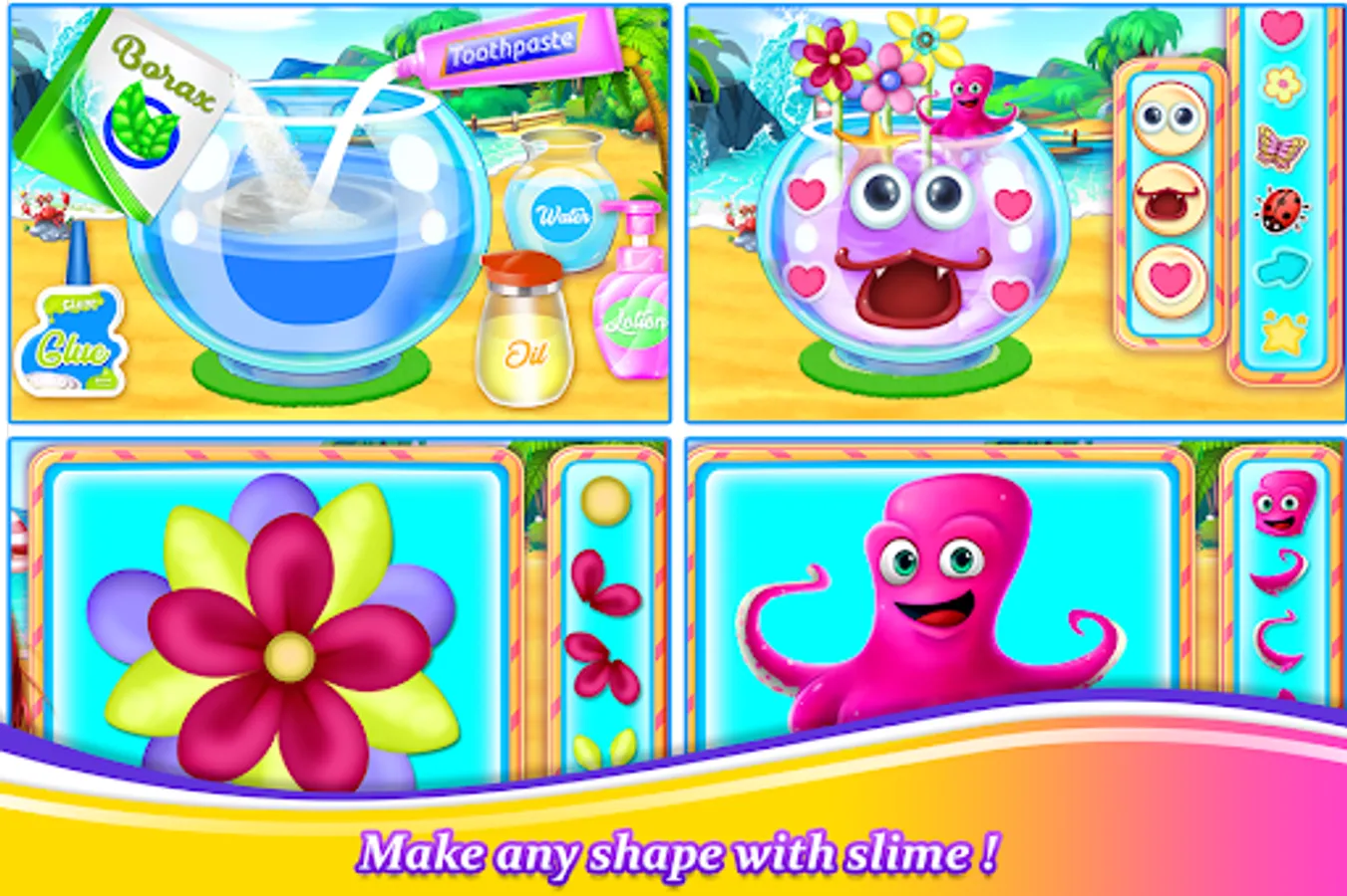Then you have to clean the ocean, use a special sieve and gather all the garbage from the water and the beach. After this important activity, you and your friends can start to make the most interesting slime shapes, you can make unicorns, teddy bears, fish, cars, flowers, and other shapes that you like.