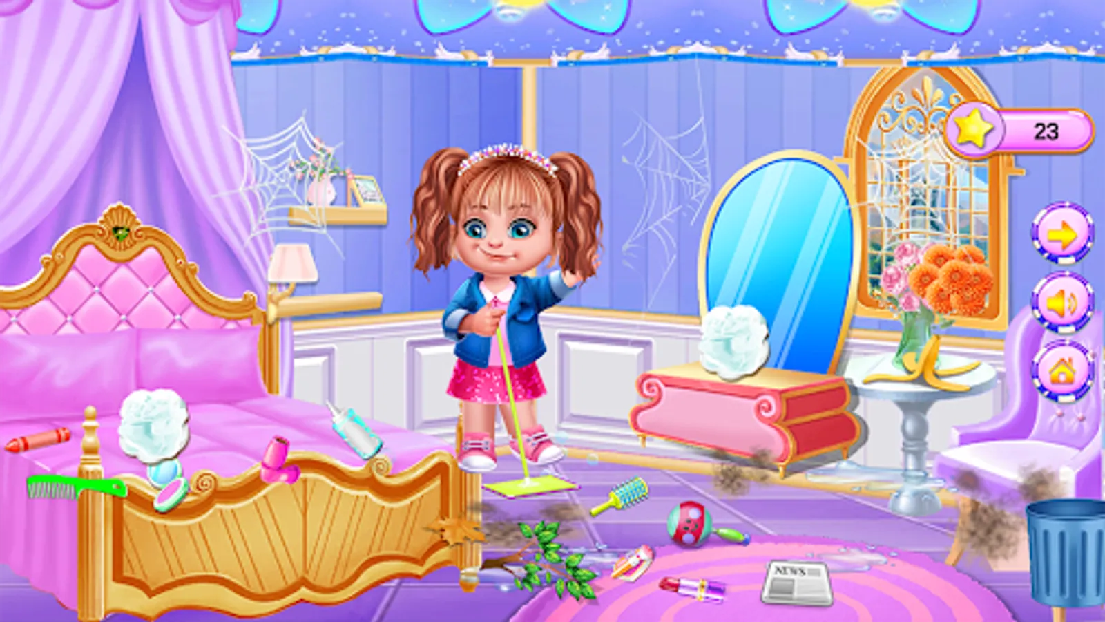 We all love to clean our bedroom but is more interesting to clean the entire house, with this family house cleaning day game for girls you can have fun very well while you play a super game for kids. Through this app you can meet three girls, they are very cute and now they are waiting for you to help them with all these chores. All the house is very dirty, you can use everything you know about cleaning and start to make this place shine.