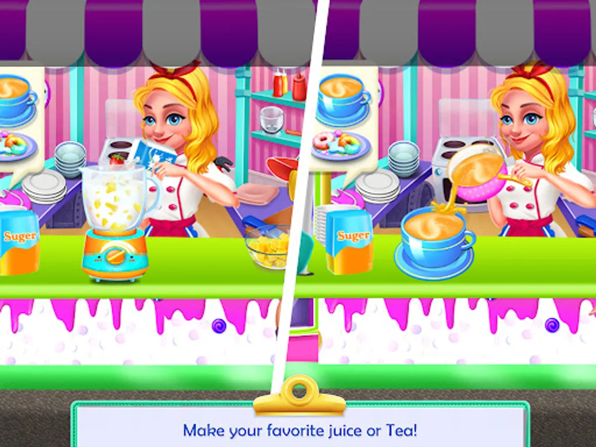 For your next client you have to prepare delicious ice cream, use a mixer and an ice cream maker, we love fruit ice cream, so add some sugar, white cream, milk, eggs, and kiwi. Your next client wants ice tea, you have to prepare it.
