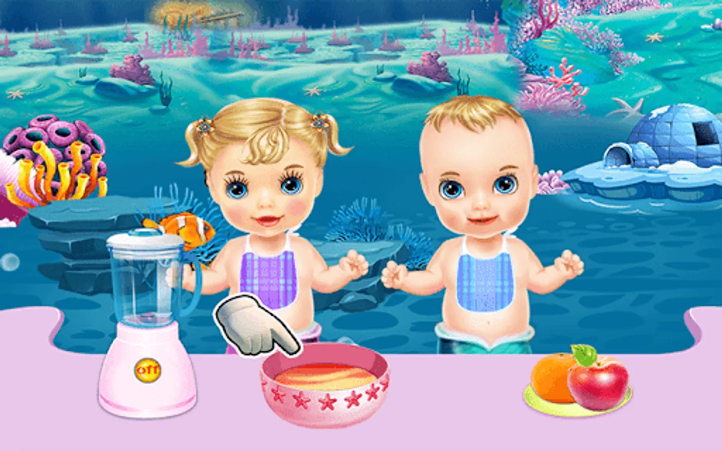 If you're wondering what this mission is about you should know that is extremely beautiful and particular will have to take care of twins, very interesting, right? The two little ones will be born soon in the depths of the ocean because their mother is a beautiful mermaid. She lives at the bottom of the ocean. With this baby care game, you'll be able to visit a wonderful land, and more than that you'll be able to prove that you are a good doctor, a good nanny, and especially that you are a trusted friend. You will definitely like to spend time with us through this game with mermaids.