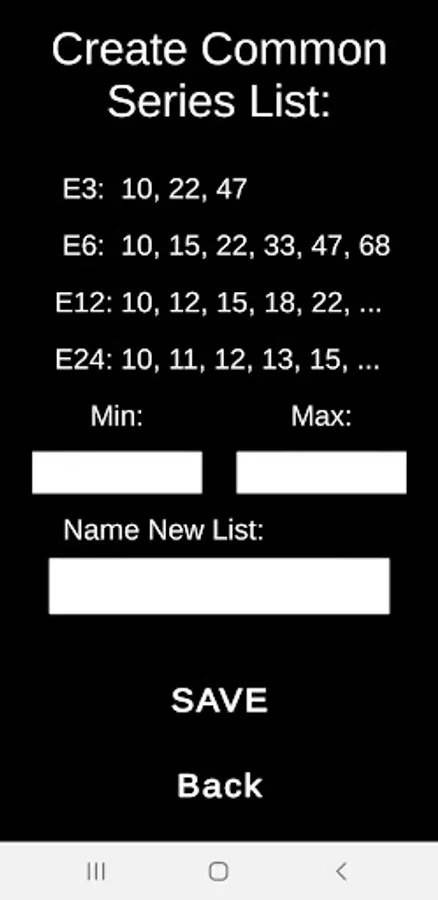 Equivalent resistor calculator with a filesystem and custom lists.
