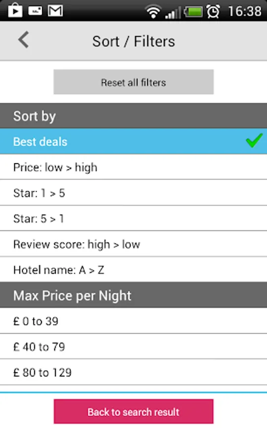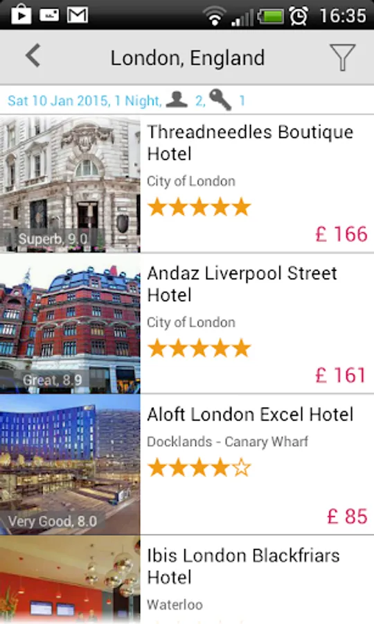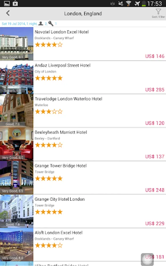 * Filter your results by price, star rating, guest and TripAdvisor reviews, type of property, payment options, booking sites and many more options.