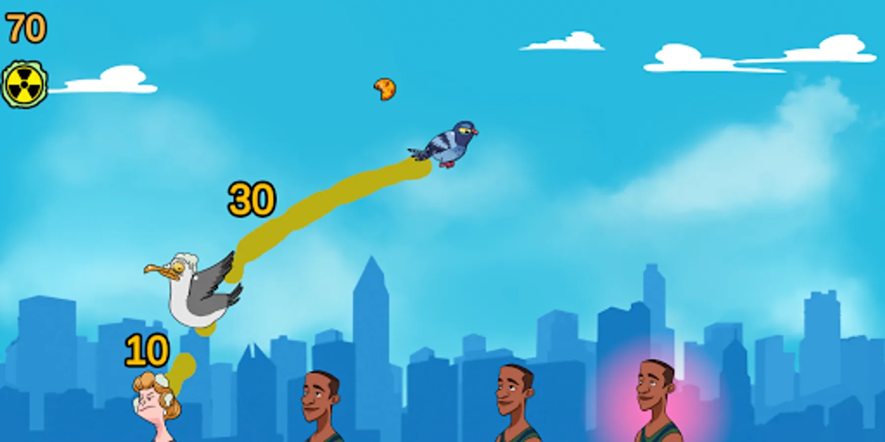 Make your name legandary and achieve the highest rage score by pooping on as many people as you can. However, take care not to collide with the dumb seagulls as that would ruin your poop stride.