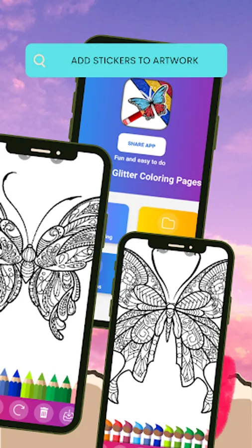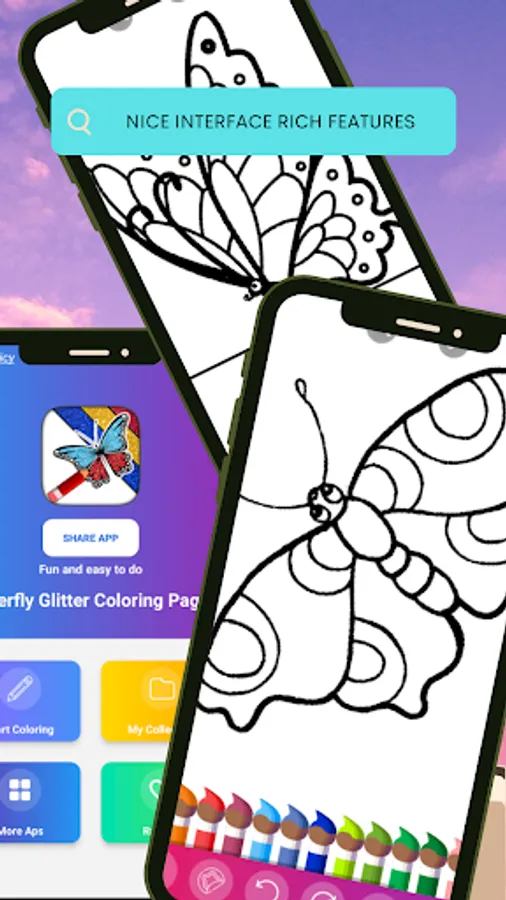 Butterfly Coloring Pages is an app that helps the combine glitter with a variety of colors to create amazing art pieces.