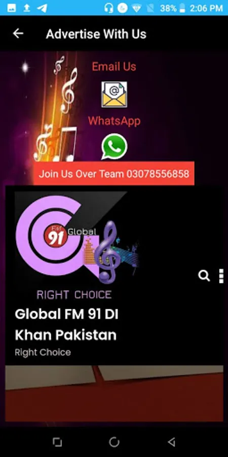 Global FM 91 is the one & only platform for the community of Dera Ismail Khan which covering most surrounding districts because of the heavy transmitter and antenna height. We are broadcasting on FM 91 , Online www.globalfm91.com and Mobile App Global FM 91 DI Khan.
