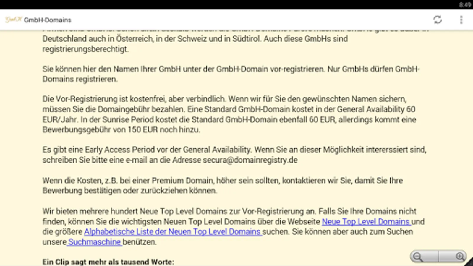 You must be a clairvoyant to predict the success of the GmbH domains. Most German companies are limited liability companies. For that reason alone, the GmbH domains will make a splash. LLCs there except in Germany also in Austria, Switzerland and South Tyrol. Even these limited liability companies are entitled to registration.