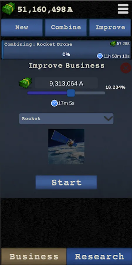 Research new technologies, then combine them, then improve them without any limits. And then buy as many of them as you can to gain huge profits.